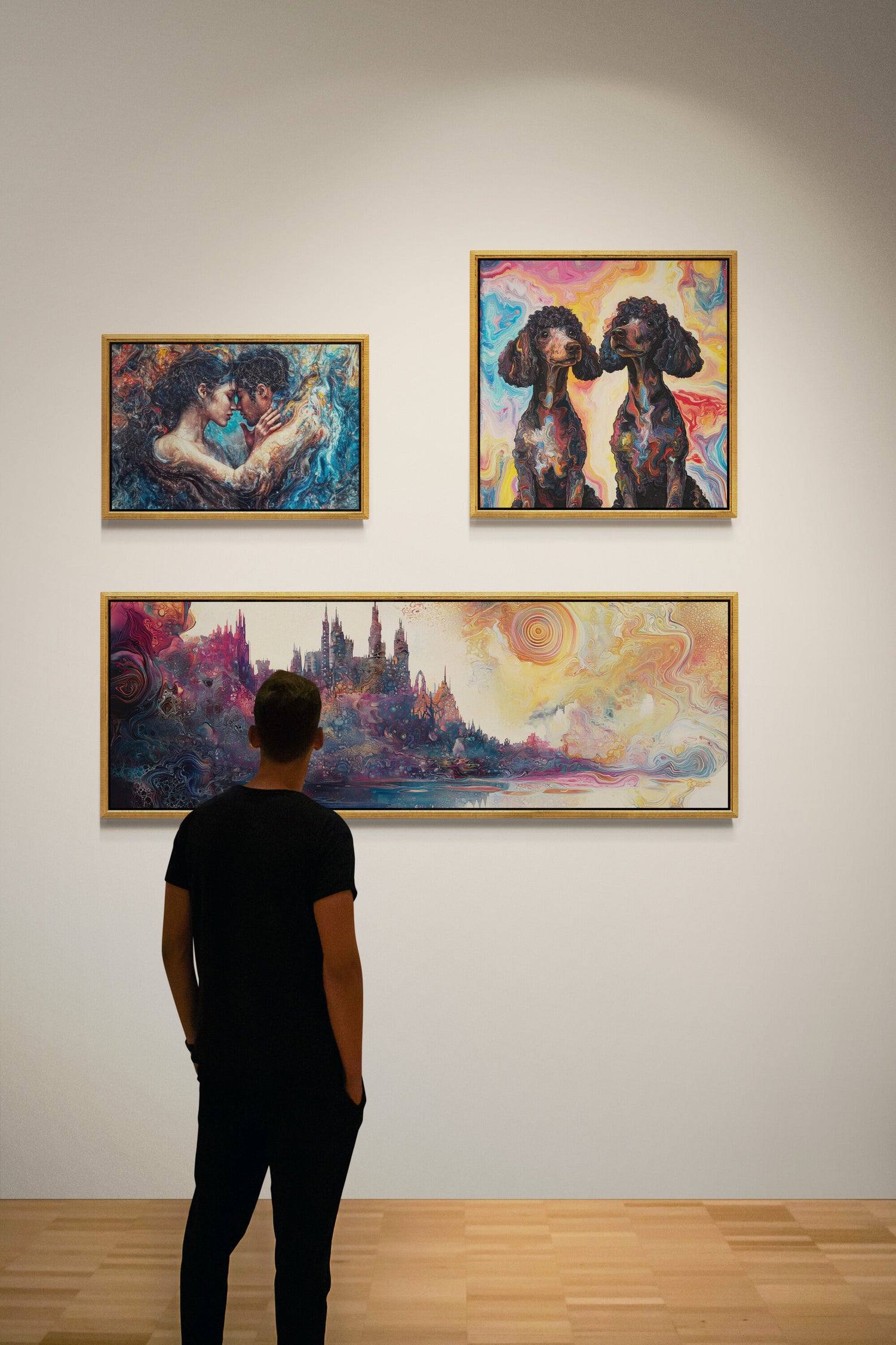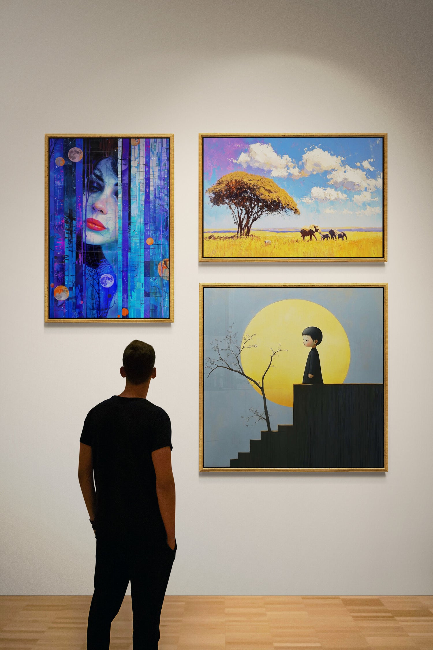 Die Größe eines Bildes bestimmt seine Präsenz. Ein großes Format kann ein Raumthema setzen, während kleinere Werke leise Geschichten erzählen.