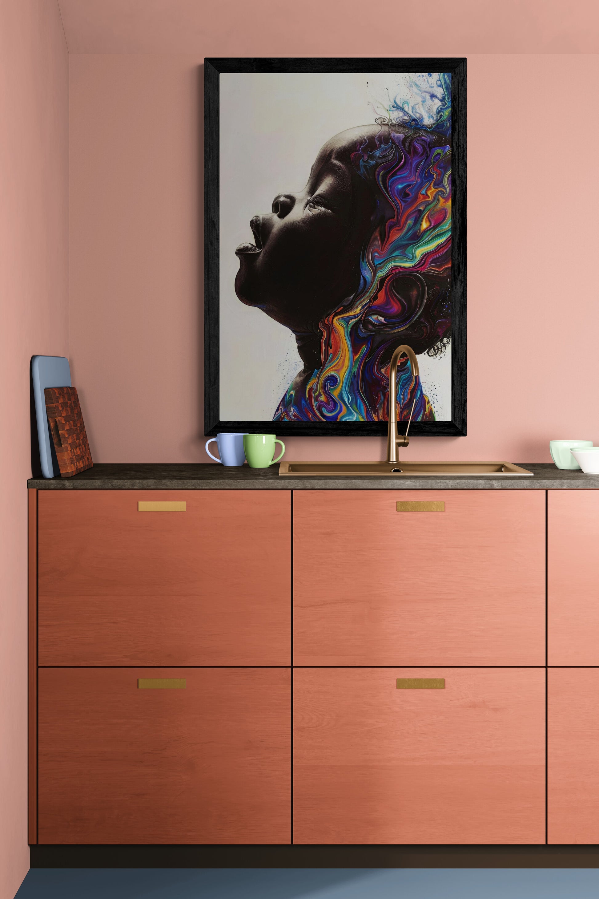 „Child of Light“ gehört zur Kollektion African Spirit und trägt genau diese Idee in sich: Lebensfreude, Ausdruck, Kreativität. Das Bild erzählt von der Kraft der eigenen Stimme, vom Mut, sich zu zeigen, vom freien Spiel der Fantasie.