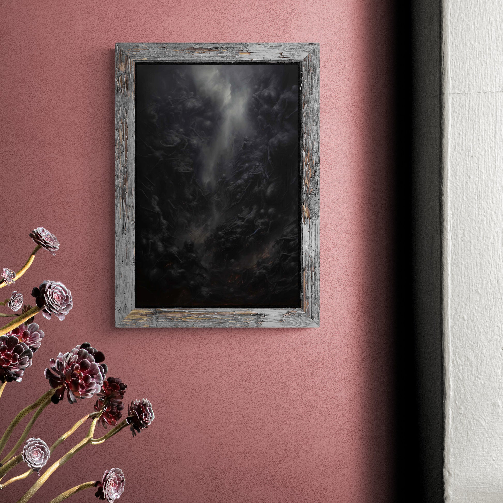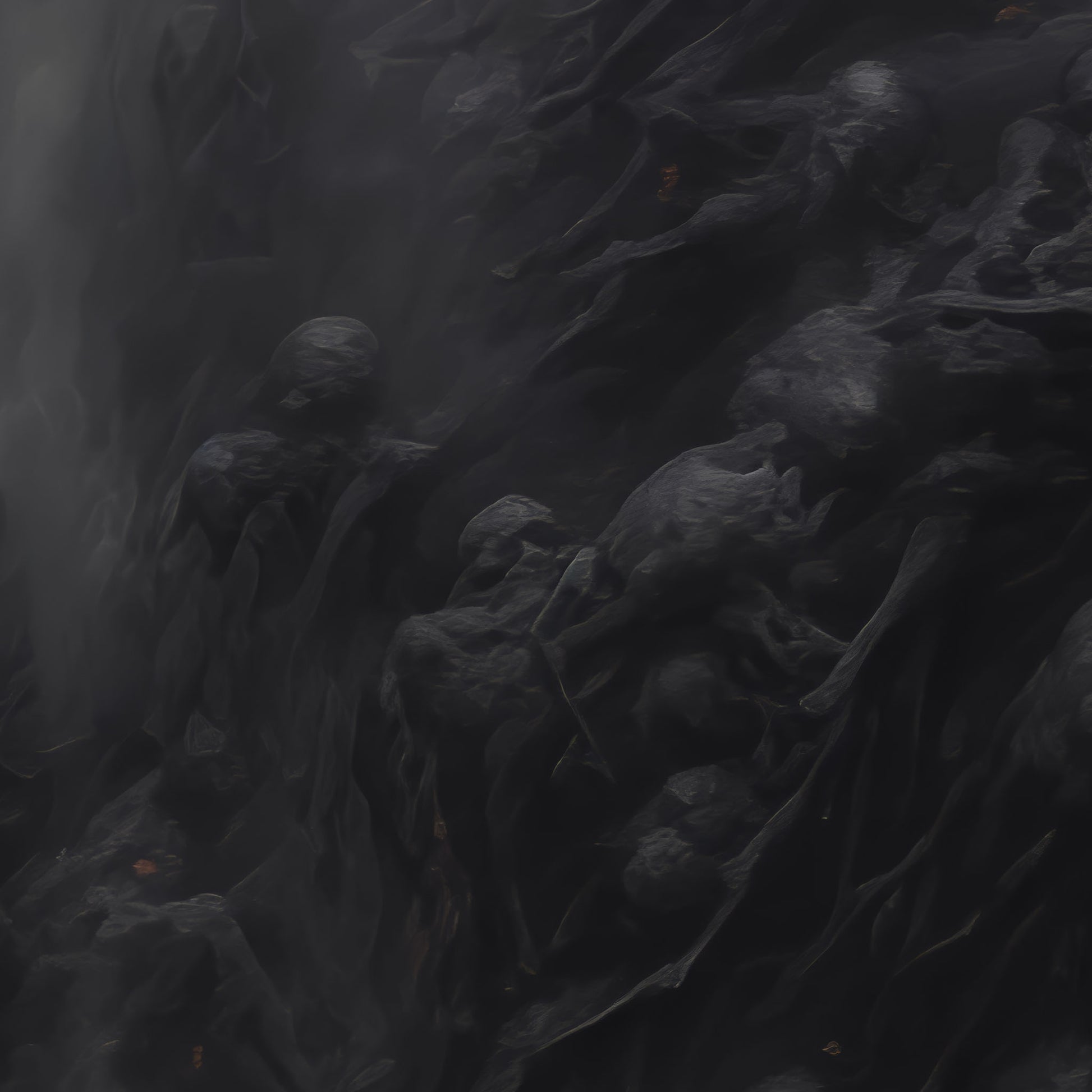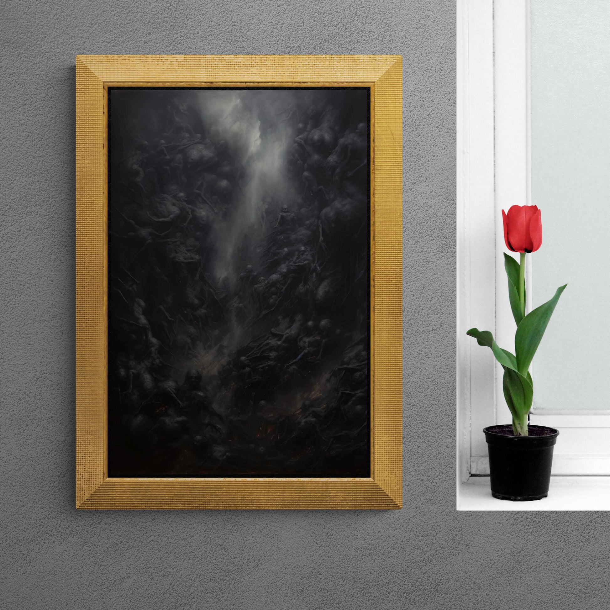 „Hell #5“ führt die düstere Serie mit einer noch klaustrophobischeren Vision fort. Aus einer engen, schattigen Schlucht steigen deformierte, körperhafte Gestalten empor oder ringen sich in verzweifelter Bewegung an den Felswänden entlang. Das Licht von oben bleibt diffus, beinahe höhnisch – es beleuchtet das Leiden, ohne Erlösung zu bieten. Im Zentrum glimmen rötlich-orange Funken wie versteckte Feuerherde unter der Oberfläche. Die gesamte Szene wirkt wie eine stille Verdammnis, eingefroren zwischen Schmerz, Enge und Ausweglosigkeit. Ein finsteres Finale in der Serie „Hell“.