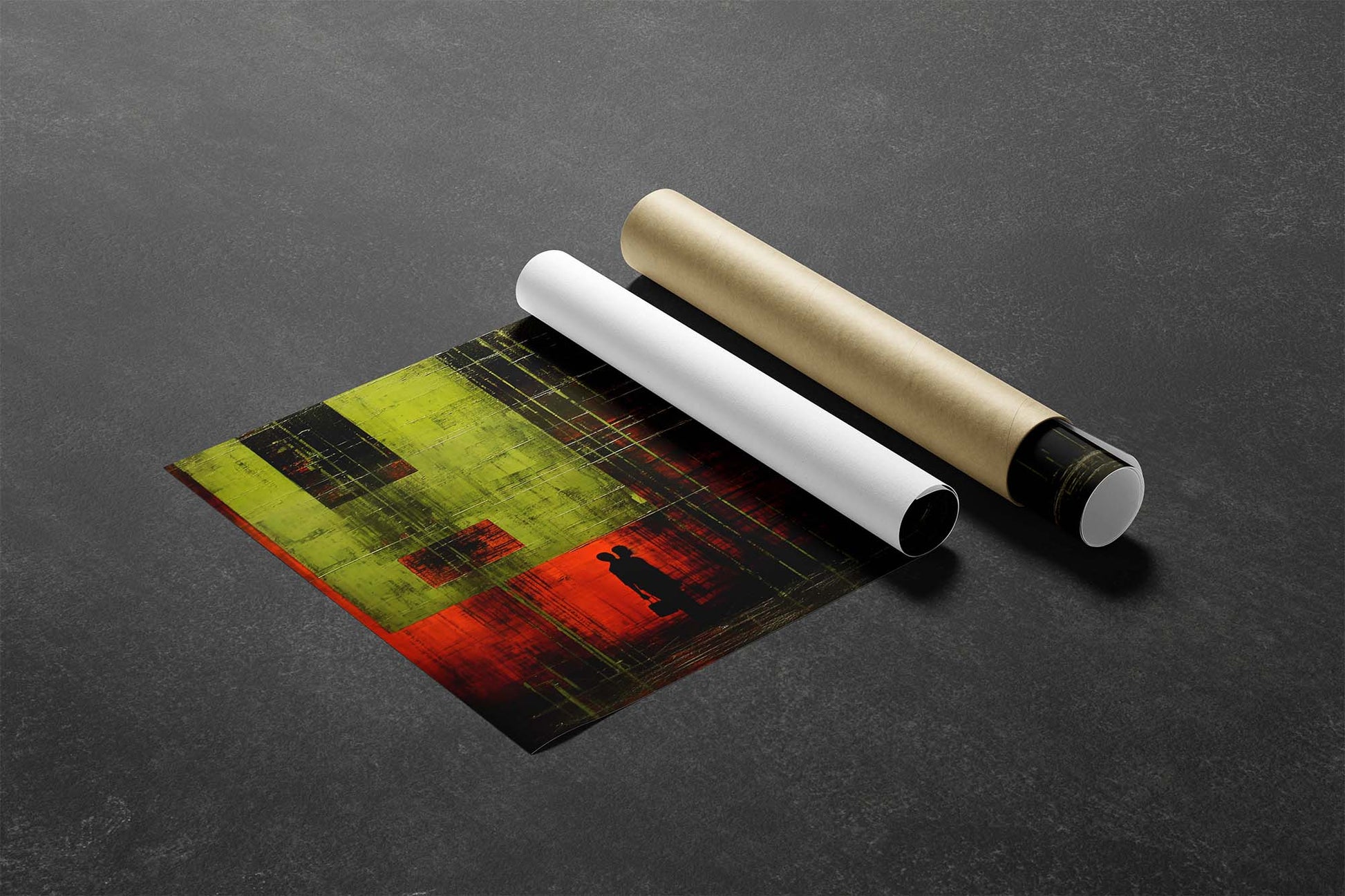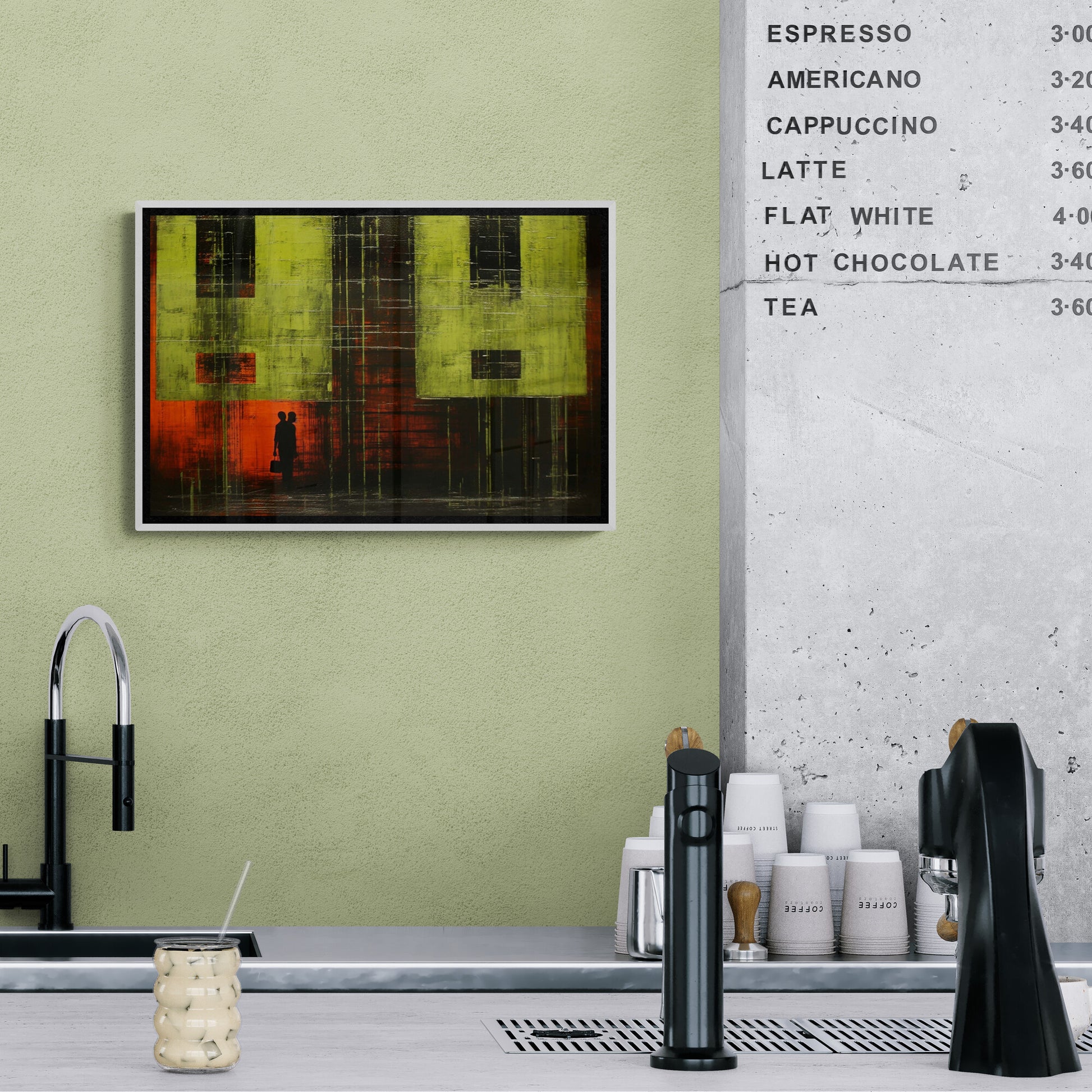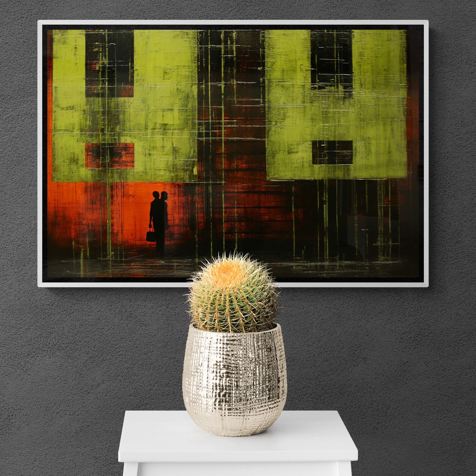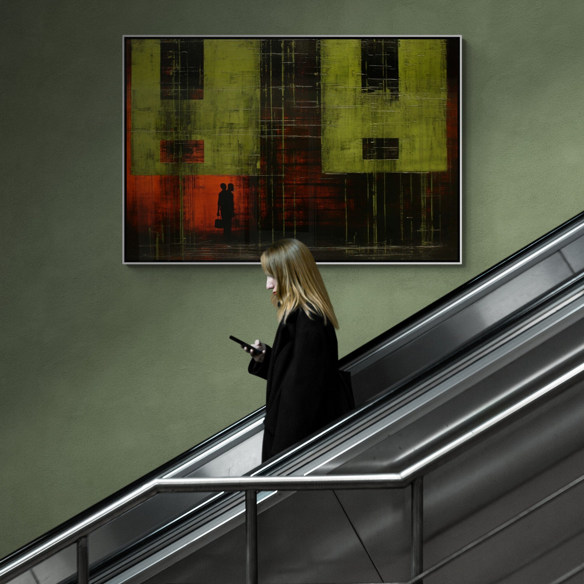 Wie ein Gedanke, der sich in Schichten aus Farbe und Struktur verfängt: „Thunder in my Mind“ ist eine Hommage an die innere Spannung zwischen Ordnung und Emotion. Die streng vertikalen Linien erinnern an Fassaden, Raster, Systeme – doch dahinter pulsiert ein Glühen, ein Sturm aus Rot und Schwarz. Die kleinen Menschen am unteren Rand scheinen von der Wucht des Raums verschluckt zu werden, und doch behaupten sie sich – als Sinnbild des Denkens, das nicht zur Ruhe kommt. Ein Werk von stiller Gewalt, ideal für Räume, die Tiefe und Nachhall vertragen.